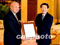 朱镕基今天在此間會見了香港特別行政區行政長官董建華,并向他頒發了任命董建華為香港特別行政區第二任行政長官的國務院令。