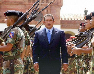 圖:委內瑞拉10名高級軍官發表聲明要求總統下臺 2002年04月12日 10:57 委內瑞拉10名高級軍官11日發表聲明,要求總統查韋斯下臺.圖為2002年2月4日委內瑞拉總統在首都加拉加斯檢閱軍隊。法新圖