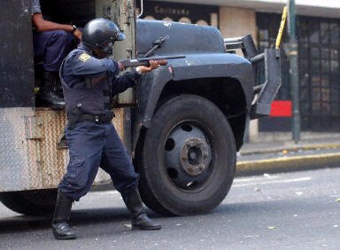 ![]() 委內瑞拉當地時間4月11日晚(北京時間12日上午),國民警衛隊的卡伊魯茲將軍宣布,總統查韋斯的政府已經“不再履行其職能”,全國局勢已經被軍隊控制。此前,委內瑞拉發生數十萬人罷工,群眾要求查韋斯辭職。他們與警察、國民警衛隊以及總統的支持者發生了激烈沖突,至少已導致12人死亡,96人受傷。圖為騷亂中一名國民警衛隊員躲在車后準備射擊。(春風)