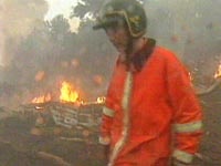 圖:中國國際航空公司客機失事現場的救援工作 2002年04月15日 19:42 ![]() 四月十五日上午十一時許,中國國際航空公司一架波音767客機在朝鮮釜山機場附近山上墜毀,救援人員在失事現場滅火救人。