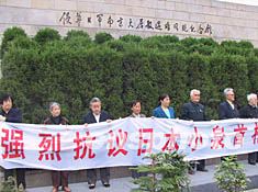組圖:南京大屠殺幸存者抗議日本首相靖國(guó)參拜 2002年04月22日 18:55 ![]() ![]() 四月二十二日下午,南京大屠殺幸存者、受害者遺屬和社會(huì)各界人士?jī)砂俣嗳嗽谇秩A日軍南京大屠殺遇難同胞紀(jì)念館內(nèi)舉行集會(huì),強(qiáng)烈抗議日本首相小泉于昨日再次參拜靖國(guó)神社。作者:楊艷