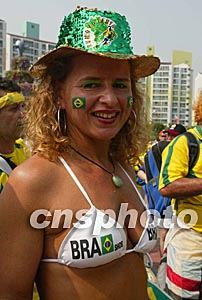 圖:性感的巴西女球迷 2002年06月03日 17:16 ![]() 世界杯足球賽C組賽事三日在韓國蔚山拉開戰幕,球迷盼望已久的巴西隊出場與土耳其隊對陣時,性感的巴西女球迷到賽場助威。毛建軍 攝