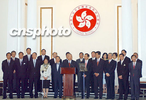 組圖:香港特首董建華與“新內(nèi)閣”拍攝全家福 2002年06月24日 12:36 ![]() 董建華與“新內(nèi)閣”拍攝全家福。香港特首董建華6月24日在香港禮賓府宣布二十一名“新內(nèi)閣”成員名單后,與將肩負重任的高官拍攝全家福。中新社傳真任晨鳴攝 ![]() 董建華宣布“新內(nèi)閣”名單。香港特首董建華6月24日在香港禮賓府宣布二十一名“新內(nèi)閣”成員名單。中新社傳真洪少葵攝 ![]() 曾蔭權(quán)梁錦松梁愛詩繼續(xù)輔佐董建華。香港特首董建華6月24日在香港禮賓府宣布二十一名“新內(nèi)閣”成員名單,原來的三位司長:政務(wù)司司長曾蔭權(quán)、財政司司長梁錦松、律政司司長梁愛詩留任。中新社傳真洪少葵攝