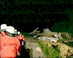 圖文:德國消防員正在飛機墜毀現場實施救援 2002年07月02日 10:51 ![]() 德國柏林當地時間7月2日凌晨(北京時間7月2日晨7時),巴登-符騰堡州地方政府的發言人稱,兩架大型飛機于7月1日夜(北京時間7月2日晨)在德國與瑞士交界的博登湖(又譯康斯坦茨湖)上空相撞,兩架飛機隨后墜落在湖邊的公路上,目前至少有97人死亡。圖為消防員在飛機墜毀現場救援。(春風)