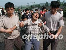 ![]() 三十九名礦工被困井下生死不明,其家屬聞訊后悲痛欲絕。目前搶救工作正在緊張進行中。吳兆飛 攝