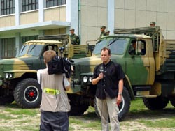 多圖:最大規模的外國記者團受邀參訪解放軍軍營 2002年07月11日 10:30 ![]() 摩托化步兵196旅進行實彈演習 ![]() 外國記者關注中國軍隊 ![]() 芬蘭廣播公司記者現場報道 ![]() 美國國際公眾電臺記者采訪空24師飛行員 ![]() 空24師政委同日本時事社記者交談,以上圖片均據外交部網站 中新網北京7月11日消息:2002年7月10日,中國外交部外國記者新聞中心組織外國駐京記者參觀采訪中國人民解放軍摩托化步兵196旅和空24師,共有來自63家媒體的105名駐華記者參加,外交部新聞司司長孔泉說,如此大規模地組織外國記者走進中國軍營,多年來還是第一次。 據外交部網站消息,196旅隸屬于北京軍區,其前身是步兵第196師,目前擔負著保衛北京和天津,守衛海防的任務。該旅下設10個營,共有3500名官兵。 記者們參觀了該旅的軍官訓練中心、生活服務中心和連隊,觀看軍事科目表演,與戰士共進午餐并自由交談。在參觀過程中,記者們還詢問了有關部隊的編制、訓練生活情況、發展前景以及部隊對臺灣、國際軍事合作等問題的看法。該旅旅長胡東敏對他們的問題一一作了回答。 空24師建立于1951年,目前主要擔負北京、天津和華北地區東北部的防空作戰任務。該師下設2個戰斗團,1個“八·一”飛行表演隊和4個場站,約有飛行員100人。記者參觀了該師定檢廠房和靜態飛機,觀看了訓練飛行。該師師長王偉詳細介紹該師情況并回答了記者們提出的問題。