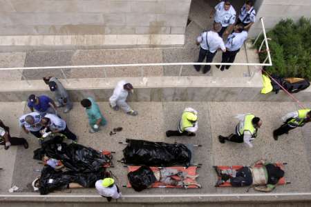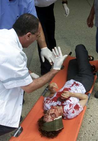 (圖)耶路撒冷希伯來大學餐廳發(fā)生爆炸致7死85傷 2002年07月31日 19:08 ![]() ![]() ![]() 中新網(wǎng)北京7月31日消息:據(jù)美聯(lián)社報道,耶路撒冷東部希伯來大學的一個餐廳31日午餐時間發(fā)生爆炸,造成7人死亡,85人受傷,其中14人重傷。 巴勒斯坦激進組織伊斯蘭抵抗運動哈馬斯宣布對此次爆炸事件負責,并稱這是對以色列23日轟炸加沙居民樓進行的報復。 雖然以色列的各大學目前均已放假,但發(fā)生爆炸時仍有許多留校學生正在咖啡廳用午餐。 事發(fā)后,新華社記者與在該大學區(qū)讀書的幾名中國留學生取得了聯(lián)系。據(jù)他們介紹,由于學校放假,中國學生均離開了學校,在爆炸中沒有中國學生受傷。目前有十幾名中國留學生在該大學區(qū)讀書。 死傷的人員中大部分為18-30歲的學生,其中許多為外國學生。這是自以巴沖突爆發(fā)以來,在以色列校園內發(fā)生的首起爆炸襲擊事件。 巴勒斯坦民族權利機構事后發(fā)表聲明譴責爆炸事件。以色列總理沙龍取消了當天的所有日程安排,預計以色列內閣將召開會議。 美國總統(tǒng)布什強烈譴責本次襲擊。他呼吁巴勒斯坦民族權利機構致力制止恐怖主義,并強調美國不會放棄推動中東實現(xiàn)和平。 在昨日,巴勒斯坦激進份子,在耶路撒冷市中心,發(fā)動自殺式襲擊,造成一死七傷。