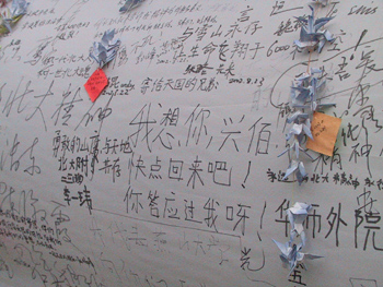 為了紀念這五位遇難同學,北京大學還在百周年紀念講堂東廳設立了靈堂,北京大學黨委書記閔維方、校長許智宏等人于今天下午四點前往哀悼。山鷹社平日訓練的人工巖壁前也成了祭奠的場所,人們在那里擺放花束、花圈,寄托哀悼之情。
