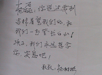 北京大學今夏希峰遇難同學楊磊的叔叔題字祭奠