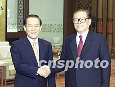中國國家主席江澤民三日在北京會見韓國大國家黨名譽總裁李會昌。滿會喬 攝