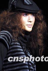 國際知名服裝品牌I.T在中國的旗艦店二十七日正式登陸上海,并于當晚在滬舉行2002秋冬時裝發布會。圖為模特在展示I.T2002秋冬新款時裝。作者:湯彥俊