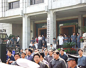 記者看到,法院門前停有二十余輛警車和三步一崗的警察,一些參加其他案件審理的人員仍有秩序地進進出出,并沒有因為這件震驚全國的大案而受影響。記者發稿時,該案休庭十分鐘,即將宣判。