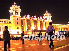 “十一”國慶節(jié)前夕,裝飾一新的北京火車站燈火輝煌。作者:鄒憲