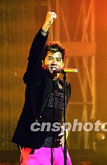 圖為香港歌手郭富城在晚會上勁歌勁舞。