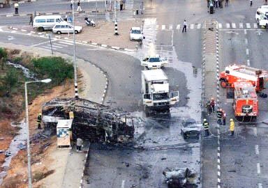 巴勒斯坦領導人阿拉法特對這次爆炸事件表示譴責,他說,他反對“殺害以巴雙方平民的舉動”。但一名以色列官員說,阿拉法特應為此事負責并下臺。