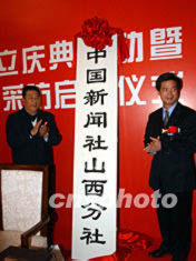 中國新聞社副社長(zhǎng)兼總編輯郭招金和山西省政協(xié)主席鄭社奎,在歡樂的樂曲和來賓的掌聲當(dāng)中,為中新社山西分社揭牌。中華全國新聞工作者協(xié)會(huì)有關(guān)負(fù)責(zé)人,以及“華夏文明看山西”港澳臺(tái)記者團(tuán)也參加了此間活動(dòng)。