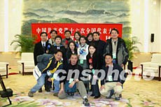 中國共產黨第十六次全國代表大會十日繼續舉行分組會,采訪會議的臺灣記者在北京人民大會堂臺灣廳合影,留下珍貴紀念。作者:毛建軍