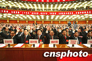 目前,大會已選舉產生新一屆中央委員會,已通過關于十五屆中央委員會報告的決議(草案),批準江澤民同志代表十五屆中央委員會所作的報告。