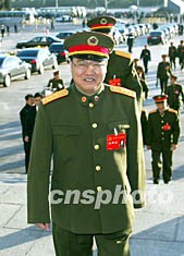 解放軍代表隗福臨步入會場時受到媒體關注。
