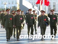中國軍方高級將領的黨代表們,十四日清晨在北京出席中共十六大閉幕會。