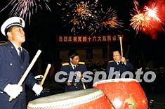 駐守浙江東部的海軍部隊官兵舉行焰火晚會,敲鑼打鼓慶祝中共十六大圓滿閉幕。作者:喻嵐