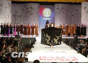 中新社北京十一月二十一日電 (記者 閆曉虹)二00二年中國(guó)國(guó)際時(shí)裝周今日在北京舉辦,海內(nèi)外服裝名師名牌競(jìng)相云集此間。