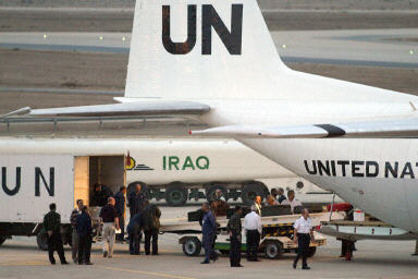 在全世界的密切關注下,首批聯合國武器核查人員25日從塞浦路斯乘專機抵達伊拉克首都巴格達。他們將在27日開始進行武器核查。已經中斷了將近4年的對伊拉克武器核查工作即將展開。新的武檢關系到海灣地區戰爭與和平。