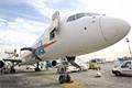 組圖:機場工作人員在檢查波音757客機有無受損