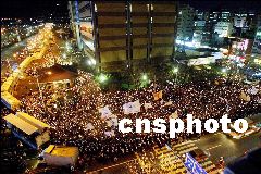 今天下午3時,漢城各社會團體和大學生7000人在市中心舉行追悼會,譴責美軍裝甲車軋死2名韓國女中學生。韓國大國家黨總統(tǒng)候選人李會昌出席追悼會,并再次要求美總統(tǒng)布什親自道歉和修改“駐韓美軍地位協(xié)定”。追悼會后,集會者走上街頭舉行了大規(guī)模燭光游行。目前已有近3萬人聚集在漢城市中心,并徒步向美國駐韓使館移動。韓國防暴警察已進入緊急警備狀態(tài)。目前,市中心的交通已經(jīng)癱瘓,燭光游行正在平穩(wěn)舉行,沒有發(fā)生暴力事件。