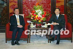 中國國務院總理朱镕基九日在北京中南海會見前來述職的澳門特別行政區行政長官何厚鏵。作者:毛建軍