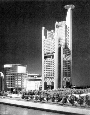 據介紹,綜合業務大樓建筑面積7.5萬平方米,地上41層,地下3層。外觀設計是一條龍圍繞著200米高的主樓盤旋而上,表達“向上和發展”的意味,大樓內部則設計成了開放式的大型中廳布局,設有演播室、信息網絡中心、節目制作中心、編輯辦公中心等。4萬多平方米的多功能演播中心具備完成綜合性文藝節目的演播、錄制和直播功能。這兩座大樓和生活服務中心大樓圍合成的開闊空間設計成了一個媒體廣場,可以進行各類文藝演出。