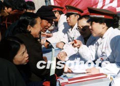 中國北方寒冬逼人,遼寧省解放軍二零五醫院的醫護人員及時向市民傳授冬季防凍防病知識。作者:王奎輝