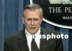 美國國防部長拉姆斯菲爾德今天也發表講話指出,十枚攔截導彈看上去好像微不足道,對于整體導彈防御計劃來說,這是萬里長征的第一步。他稱:“美國目前沒有任何能力阻擋世界任何地方發射來的;蜿懟鶎棥!