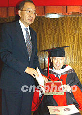 今天的頒授儀式在香港中華總商會舉行,身穿博士服的許東亮先生神采奕奕。