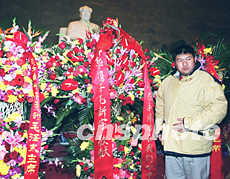 正在解放軍軍事科學(xué)院攻讀博士學(xué)位的毛澤東的孫子毛新宇,代表父母到北京毛主席紀念堂敬獻花籃。