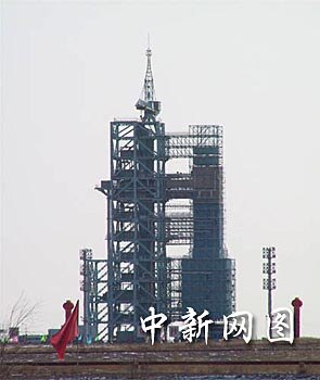 一百多米高的發(fā)射塔架擁抱著乳白色的“神舟”“神箭”組合體正倚天而立、蓄勢(shì)待發(fā)。