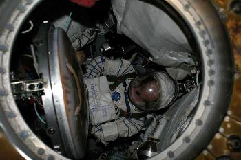 圖:中國“模擬人”進入“神舟”四號飛船 (2003-01-06 09:28:18)