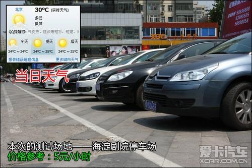 測試之前我們包下了公司附近海淀劇院的二十個停車位,為我們的測試場地提供了便利的條件,而且這個區域陽光沒有任何遮擋,可以肆無忌憚地照射在測試車型上。