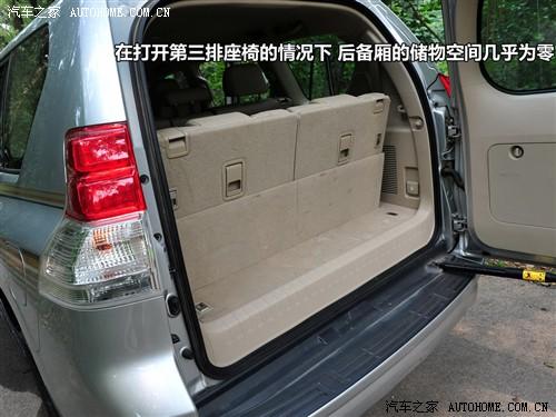 在打開第三排座椅的情況下,普拉多后備廂的儲物空間已經(jīng)近乎于零了,所以滿載7人之后,應該趕快把第三排座椅收回去,不會?請看上圖。收起第三排座椅同樣是兩步,先摳起座椅旁邊的機關,椅墊就可以自動收回了,然后再摳起椅背上的開關,放倒椅背就可以恢復如初了。