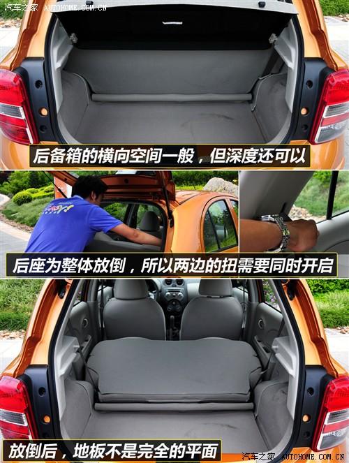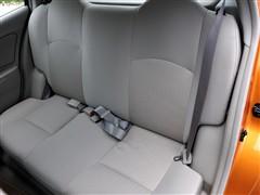瑪馳的后排座椅不能4/6分折放倒,這就意味著當你需要利用后備箱最大空間時只能容納兩人駕乘。座椅翻折時需要同時打開兩側的鎖止機構然進行操作,由于小車的寬度有限,因此獨立完成這樣的動作很輕松!看!最大空間下的狀態也挺不錯的嘛。