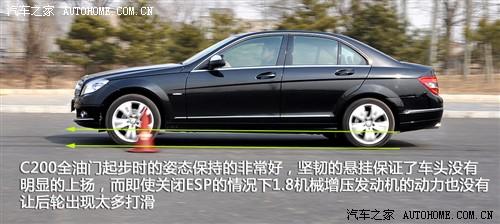 我們對C200K時尚型進行了動態評測,通過上面對發動機的介紹我們知道1.8L機械增壓發動機動力充沛,那懸掛如何呢?全油門起步時車頭沒有明顯上揚的走勢,全力剎車,車身姿態保持的比較到位,懸掛提供足夠的支撐力。