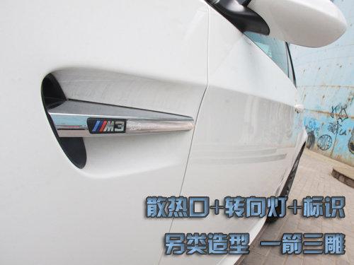 前翼子板突出的很內(nèi)斂,十點(diǎn)鐘方位擁有一個(gè)很特別的設(shè)計(jì),同時(shí)集合了三個(gè)功能,發(fā)動(dòng)機(jī)側(cè)向散熱出風(fēng)口、轉(zhuǎn)向LED指示燈以及證明M3身份的標(biāo)識(shí)。頂部的線條從這里一直延伸,經(jīng)過門把手,匯入尾燈里面。