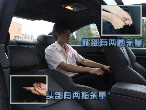 測試者座椅調整合適以后,正常坐姿時頭部有一個拳位余量,腿部活動自由,沒有特別拘束的感覺;后排空間表現良可,測試者正常坐姿下,腿部空間表現很好,有兩個拳位余量,頭部表現一般,有兩指空間,測試者稍有壓迫感。(測試者身高178CM)