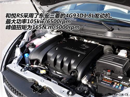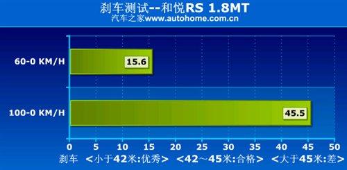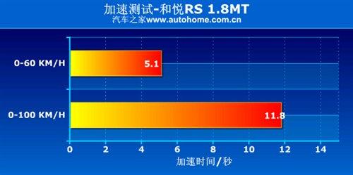 和悅RS全系車型只有一種動力組合,來自東安動力的4G93 1.8L發動機搭配5檔手動變速箱,這樣的組合技術上并不先進,但是實際測試時0-100km/h 11.8秒的加速成績還是比較令人滿意的。而配有四輪盤剎的剎車系統卻表現不佳,100-0km/h的平均剎車距離僅為45.5米,這樣的成績肯定不能令人滿意。