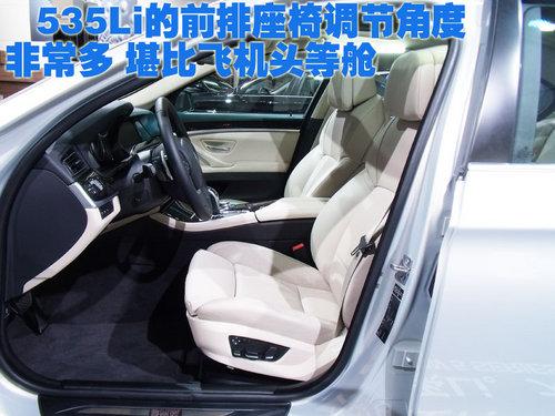 華晨寶馬新一代5系Li的車身高度相比海外原版車型略為升高了7毫米,相信這也是為了適應中國市場的路況條件。駕駛者在車內擁有較高的坐姿,其中這款535Li擁有多向調節座椅。包括大腿下方的腿托、椅背的包裹性、靠背的角度以及腰部支撐,可謂是堪比頭等艙的座椅了。