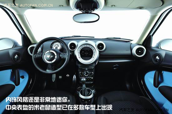 相比更加粗獷的外形,Countryman的內飾依然MINI味兒十足。大量的圓形作為基本設計元素,精靈可愛,每一處似乎都想把玩一番。不過,方向盤上集合了大量功能鍵,中控臺圓形區域內也植入MINI家族從不屑于使用的導航儀顯示屏。也許是countryman不想再桀驁不馴了吧。最具新意的要數中央滑軌,可以根據車主的要求安裝中央扶手、音頻外設、儲物盒或者杯架,這種DIY的風格很對年輕人的胃口。如果晚上再打開氛圍燈,絕對是情侶們的最愛。另外在實用性方面,后排還可以選裝40/60放倒的3座,全部放倒后,行李空間也能從350升增加到1170升。
