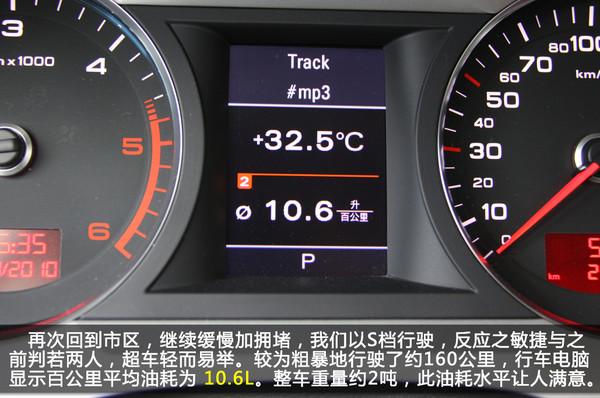 從高速路段回來,在市區內又以S檔折騰了一翻,超車輕而易舉,小菜一碟。較為粗暴地行駛了160公里,行車電腦顯示百公里為10.6L,別忘了A6L自重已經有1870 kg,加長車上的乘客與行李,足有2噸,依然能把油耗控制在10L左右,此表現讓人滿意。