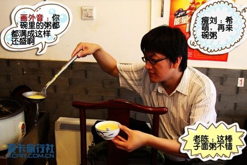 不過濫情的小卓子半路又給我們強烈推薦了一家褡褳火燒店。這家褡褳火燒店名就叫褡褳火燒,絕對樸實的名字,實際上也簡單直接的點名了主題。進門后先見的便是老板,他一路引我們坐到了最里面。這可能不是最亮堂的地方,但也許是最有趣的,比如,這里離著那個免費棒子面粥的鍋最近,所謂近水樓臺先得月,希萌大概對此深有感悟。