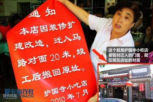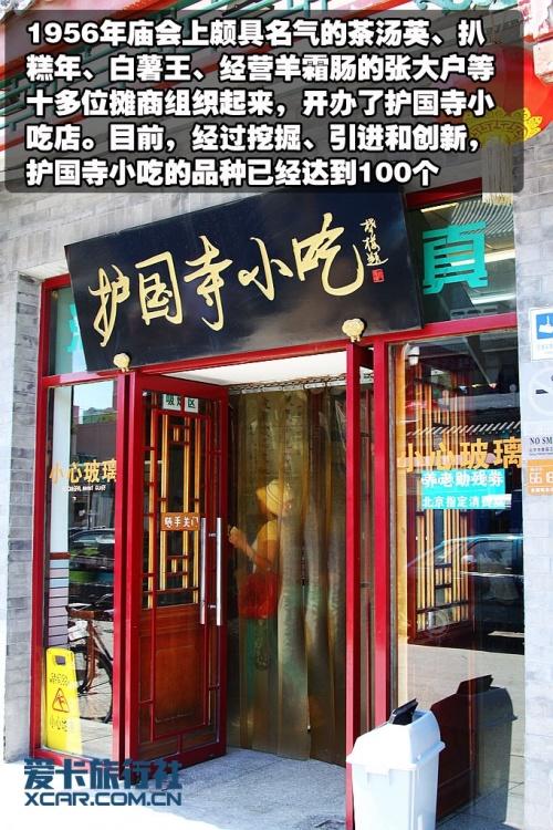 路北是“護國寺小吃店”,店面不大,卻名聲很大。因為它是護國寺廟會特色小吃的傳承者和集大成者。1956年,當廟會停辦時,為不使廟會上的特色小吃失傳,有關(guān)部門將在廟會上頗具名氣的茶湯英、扒糕年、白薯王等十多位攤商組織起來,開辦了護國寺小吃店。