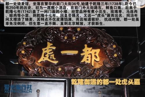 “都一處”名稱的來歷頗有幾分傳奇色彩,當(dāng)年乾隆皇帝從通州微服私訪回京途經(jīng)前門,當(dāng)時(shí)所有的店鋪都已關(guān)門,只有一家“王記酒鋪”亮燈營(yíng)業(yè),便進(jìn)店用膳,由于招待周到,酒味濃香,小菜可口,所以對(duì)小店產(chǎn)生了興趣,便和店主閑談起來詢問酒店叫什么名,店主回答:“小店沒名”。乾隆聽后說:此時(shí)京城開門的就你一家“就叫都一處吧!”乾隆回宮后親筆題寫了“都一處”店名,將其刻在匾上,幾天后宮中派人送來這塊虎頭匾。從此“都一處”代替了“王記酒鋪”,生意十分紅火。